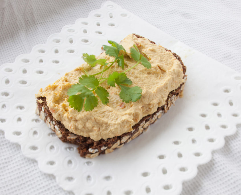채식주의자를 위한 빵과 함께 두부 야채 크림과 피망
